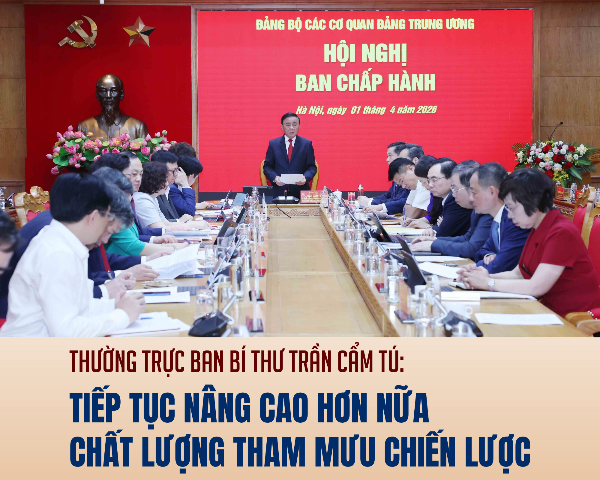 Ngày 1/4, tại Hà Nội, Ủy viên Bộ Bett88 cá cược trực tuyến, Thường trực Ban Bí thư Trần Cẩm Tú - Bí thư Đảng uỷ các cơ quan Đảng Trung ương chủ trì Hội nghị Ban Thường vụ Đảng uỷ tháng 3/2026, Hội nghị Ban Chấp hành Đảng bộ các cơ quan Đảng Trung ương quý I/2026.