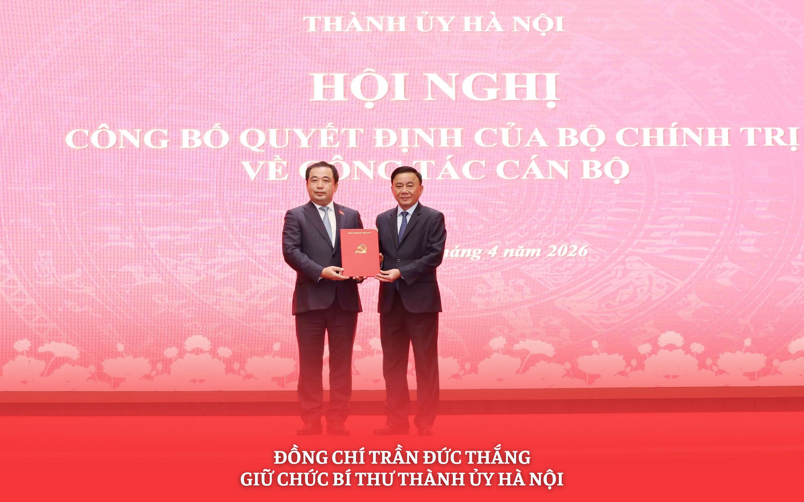 Chiều 8/4/2026, tại trụ sở Thành ủy Hà Nội, Ủy viên Bộ Bett88 cá cược trực tuyến, Thường trực Ban Bí thư Trần Cẩm Tú trao Quyết định của Bộ Bett88 cá cược trực tuyến phân công, chỉ định đồng chí Trần Đức Thắng, Ủy viên Bộ Bett88 cá cược trực tuyến, Bộ trưởng Bộ Nông nghiệp và Bet88447 kho game phong phú nhiệm kỳ 2021 - 2026 giữ chức Bí thư Thành ủy Hà Nội khóa XVIII, nhiệm kỳ 2025 - 2030.